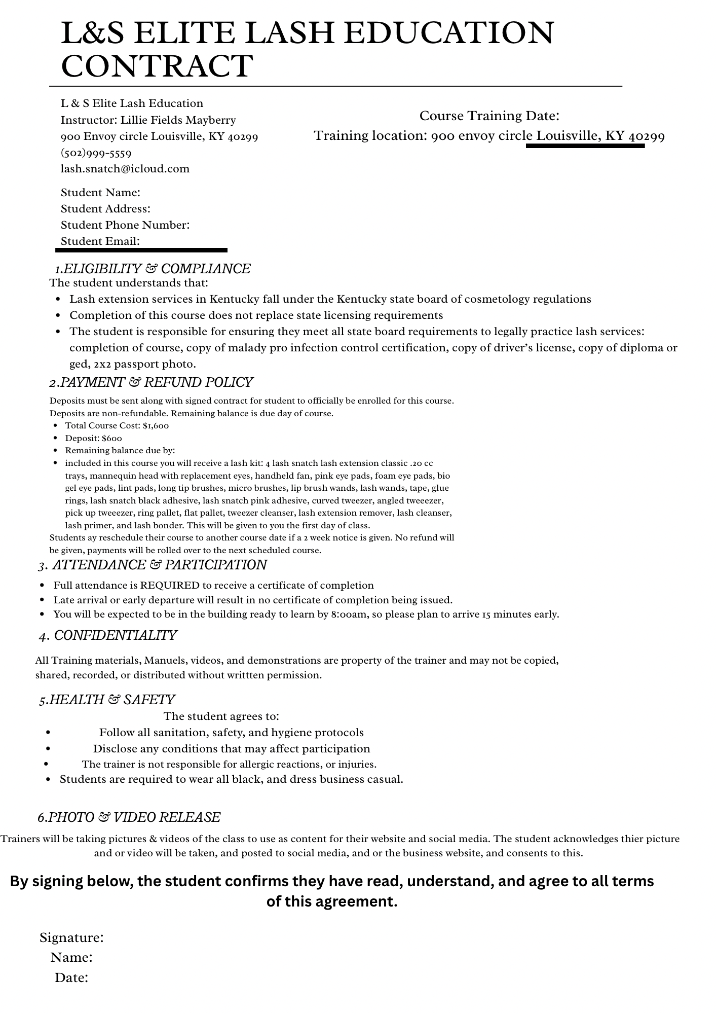 L&S Elite Lash Education Contract